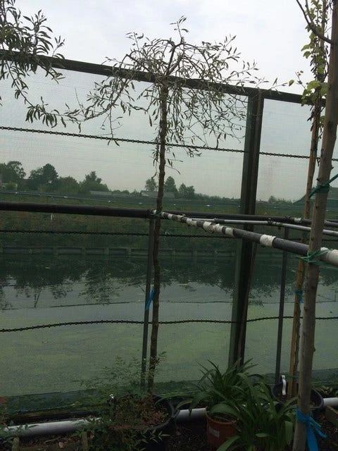 De takken van de Pyrus salicifolia ‘Pendula’ kunnen vrij breed uit gaan hangen, waardoor de boom ruimte nodig heeft.